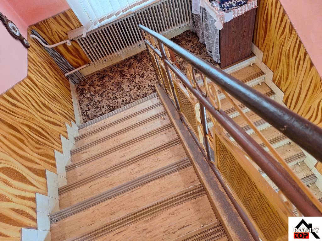 Na druhom podlaží sú 3 obytné miestnosti, kúpeľňa s vaňou a sprchovacím kútom + WC, špajza a chodba s balkónom a so schodiskom. Dom je priestranný, slnečný, steny sú suché bez prasklín. Okná sú pôvodné drevené, podlahy sú parkety, PVC a dlažby. Dom je napojený na elektrinu, plyn, vlastnú studňu a žumpu.